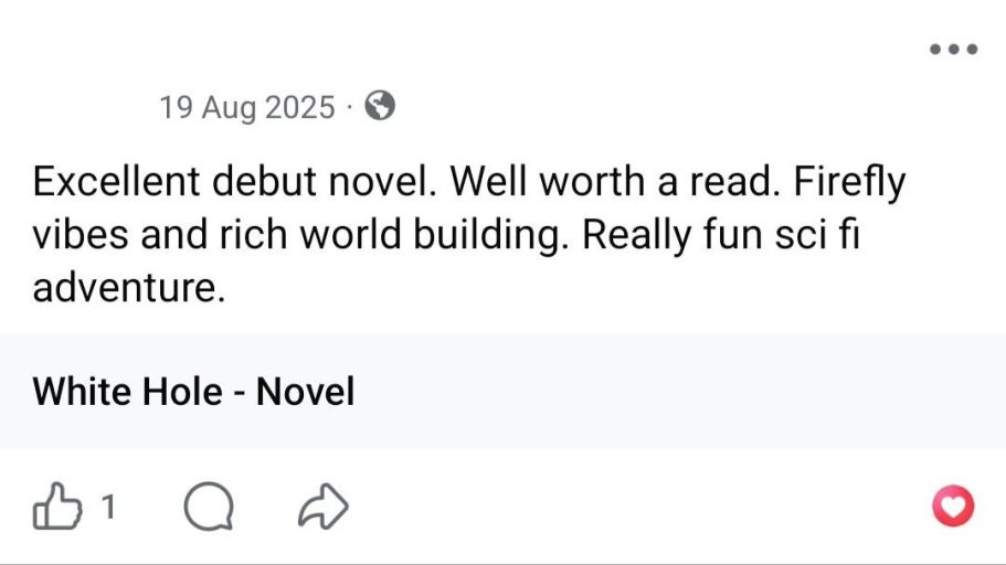 Read "White Hole Volume One: The Corwin" but not left a review? Follow the link below. I'd love you forever!